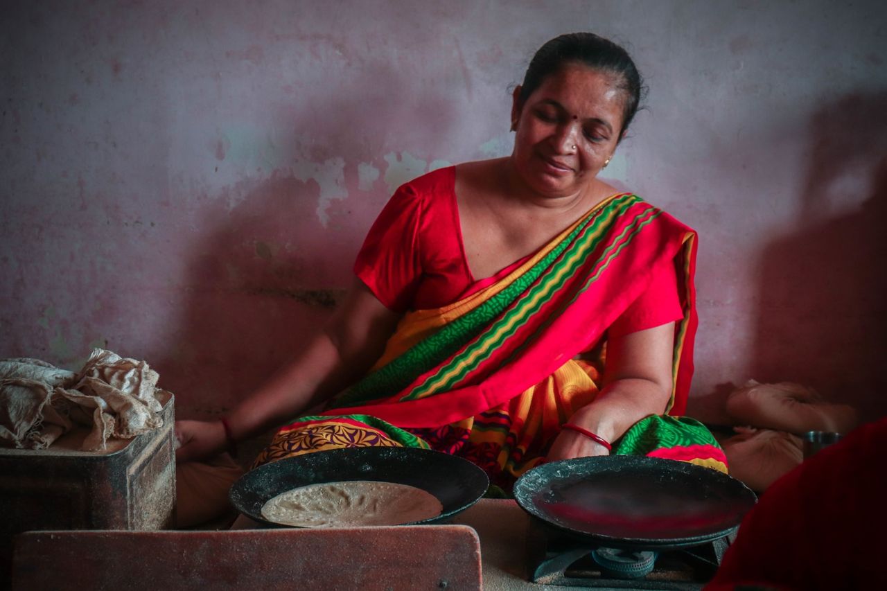 The sound of ringing bells and peaceful morning prayers cuts through the air and intertwines with a waft of ginger and mint brewing with chai at a corner tea stall. A batch of wet clothes is hung on a clothesline, water dripping on the street. Monkeys perch on telephone poles. Vegetable vendors call out to potential customers: “Potatoes, tomatoes, spinach! Take it before it’s sold out!”. Handcarts and green and yellow auto-rickshaws jostle each other in narrow lanes, wide enough to only let one vehicle pass through at the time.