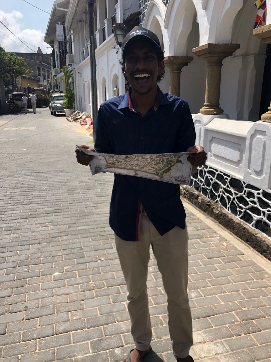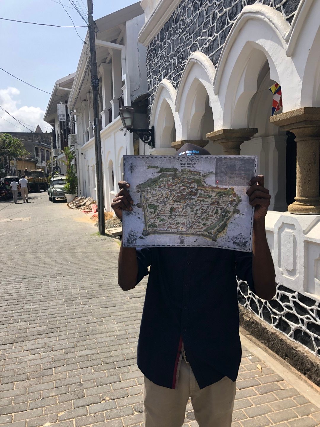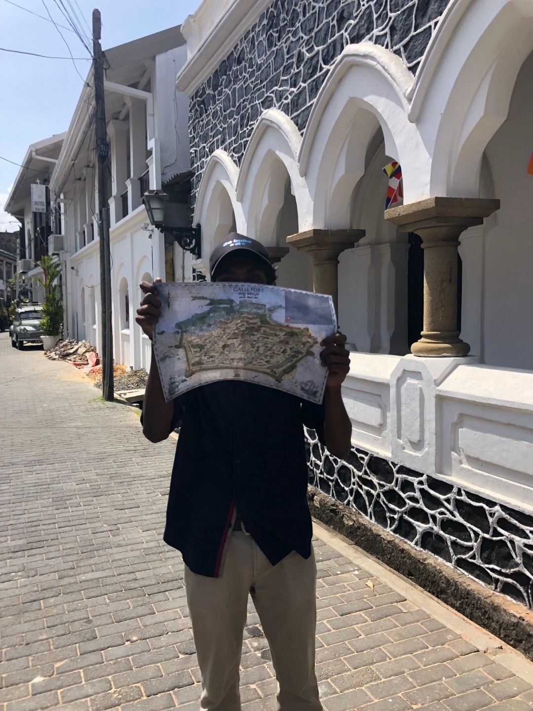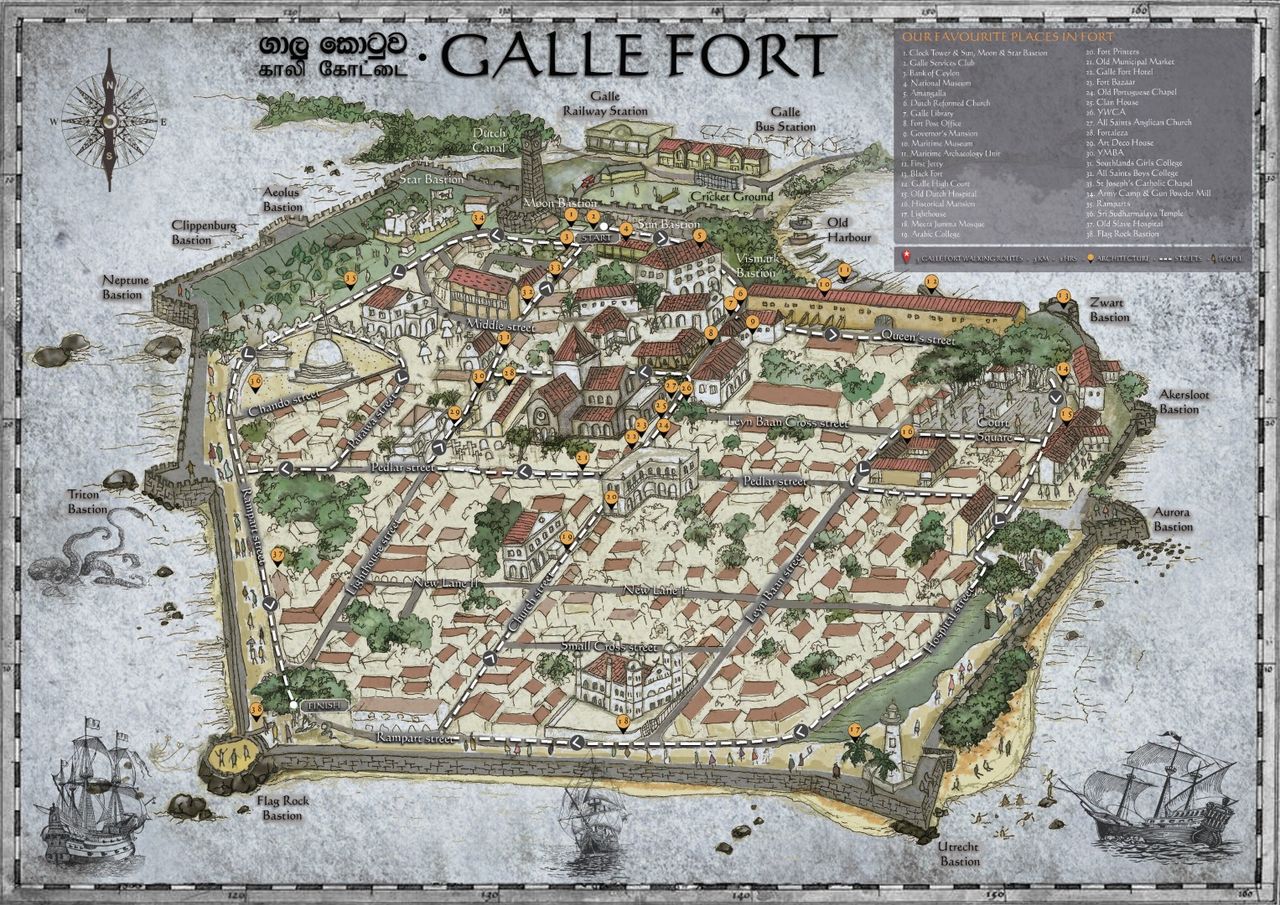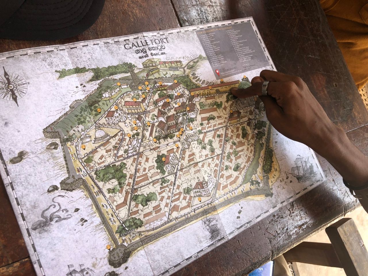 Born and raised in Galle, the young illustrator Shehan Dissanayake knows the Fort like the back of his hand. He loves the place so much just that just talking about the banyan trees or the lighthouse brings a smile to his face. On a lovely summer morning, we meet him for a stroll around the ramparts, with a map in hand. Shehan explains how making this new map was a group effort. “We wanted to create something that reflects how proud we are of our heritage. Something so old, still so valuable. We want to pass on that feeling to the users.” That’s why they took their inspiration from the old seafarer’s maps. These old beautifully hand-drawn maps were created with such skill and precision. Each is a tribute to the maker’s artistic signature.