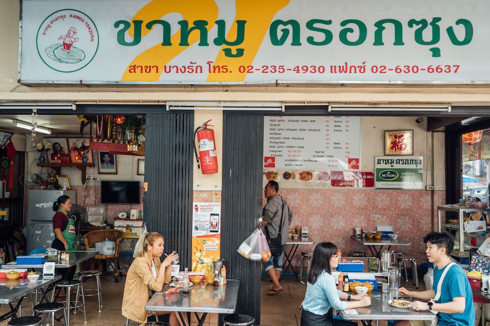 Bangkok's most famous braised pork leg restaurant was born and is still located in the same corner shophouse where it was founded in 40 years ago. Even now that Kamou Tokzung has branches all over the city, diners still flock to the original store in Bang Rak. The local favourites are braised pig’s trotter and crispy pork over rice. The meat, skin, and fat is a melt-in-your-mouth experience and the crispy pork crunches with each bite.