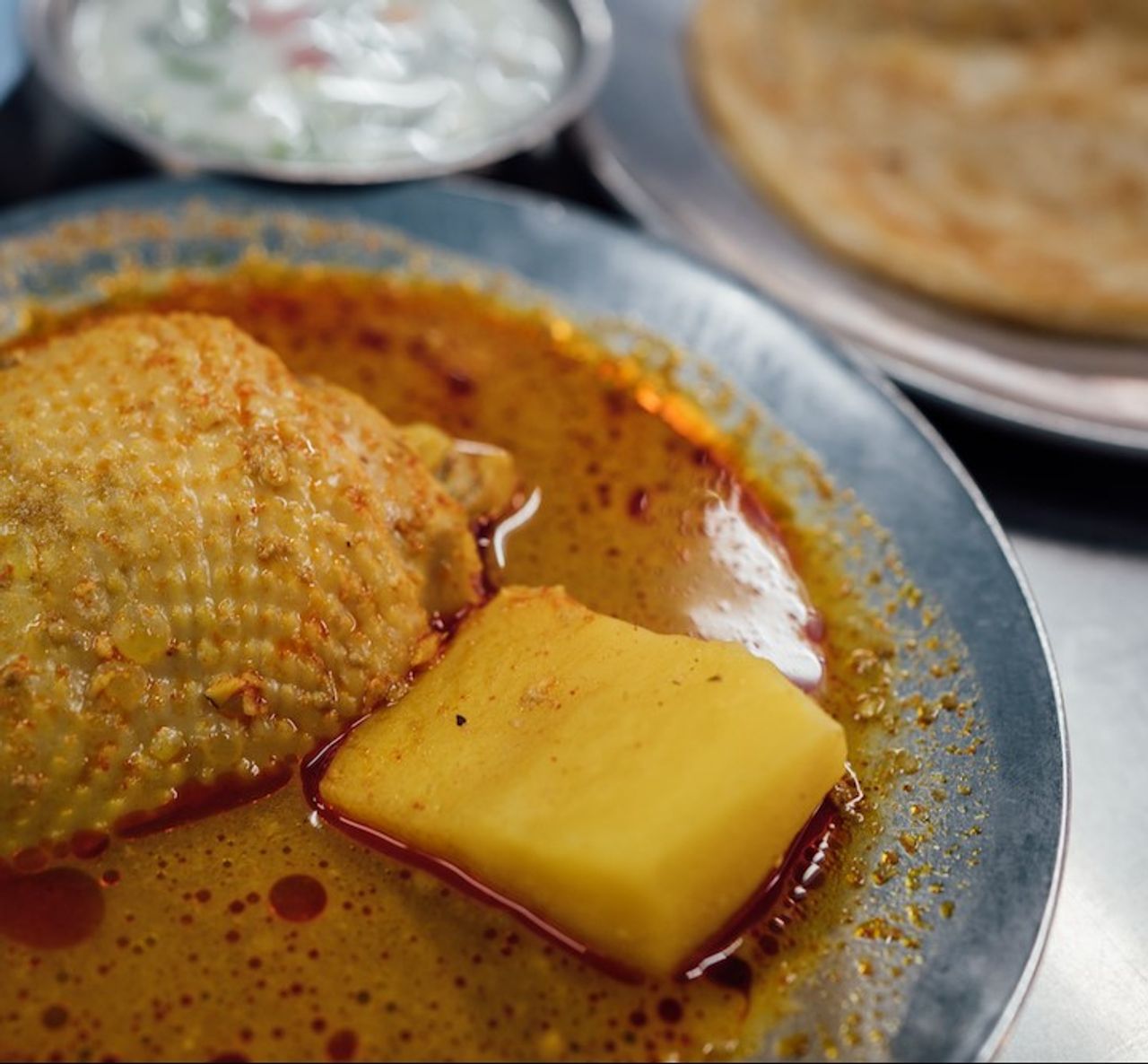 Charoenkrung Road used to be Bangkok’s high street with wide pavements and even a tramline! In those days, Indian restaurants were a rarity, and this place was sought after o get a good biryani. Today it still this dish that drives the crowd here. The humble restaurant is now in its third generation, run by Khun Natthaphon Phayayawong. His grandfather started as a butcher at Bang Rak market selling goat meat to restaurants and palaces, then tried his luck at cooking the dishes he loved. The result was Muslim Restaurant.