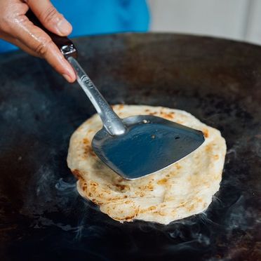 The fried egg roti with a cup of hot tea from Malaysia is popular, we also recommend the sweet roti with condensed milk and sugar.