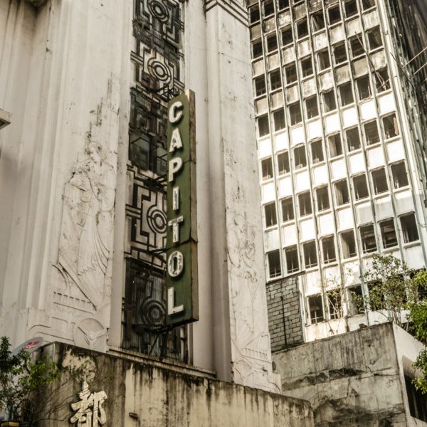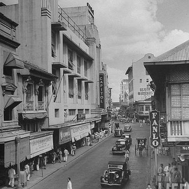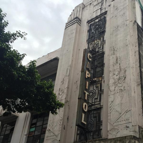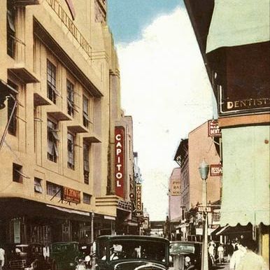 During pre-war Manila, Escolta was lined with bars and theatres, the hustle and bustle of the weekend Manila crowd. The most popular entertainment venue was the Capitol Theatre. It was owned by the theatre moguls Vicente and Ernesto Rufino, who also owned several other theatres and movie houses across Manila. Built in 1935, it was designed by Juan Nakpil, the popular Art Deco style similar to the Regine and Perez-Samanillo Building. Only Warner Brothers movies were shown here because movie production companies owned their own movie houses, disallowing rival companies to show their movies. During the Japanese occupation in the 1940s, Hollywood films were prohibited and were replaced by Japanese film propaganda. In World War II, some parts of the structure and wall murals were destroyed, but the theatre as a whole stood strong amidst the rubble. It was restored after the war but stopped operations in the 1970s because of the waning popularity of independent movie houses.