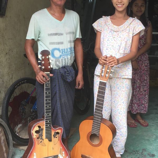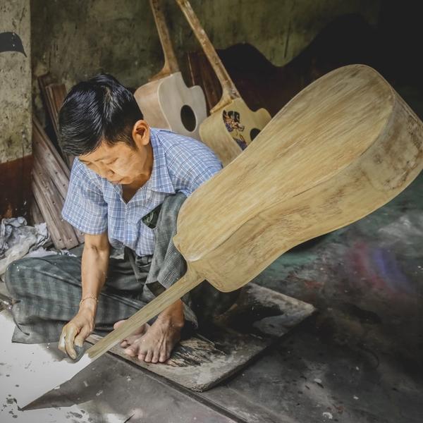 The guitars are made using three varieties of wood ¬– teak, padauk and pine, all found locally in Myanmar. Because there is limited access to the usual woods used in guitar making, local species are used, giving the guitars a unique sound.