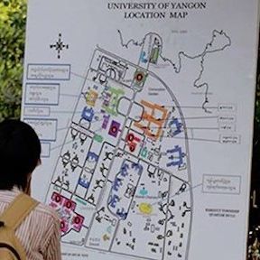Established as an affiliated college of the University of Calcutta in 1878, Rangoon University was once one of the most prestigious universities in Asia, attracting students from across the region. Throughout history, students and alumni have spearheaded much of Myanmar’s political activism, notably the protests against British colonial rule and the independence movement. After WWII the military authorities ended the University’s autonomy, placing it under central government control and changed the language of education from English to Burmese.