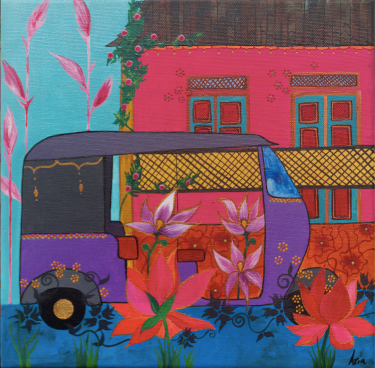 When I was younger, I was often inspired to include elements of the Fort in my paintings: the architecture and tuk tuks. I would describe my paintings as fantasy art. They were inspired by Sri Lanka and included elephants, temples, and flowers iconic to the island. I was also influenced by old books and vintage tapestries from Sri Lanka, India, China and Japan. Now I am a lot freer in my style, and just paint whatever I feel like!