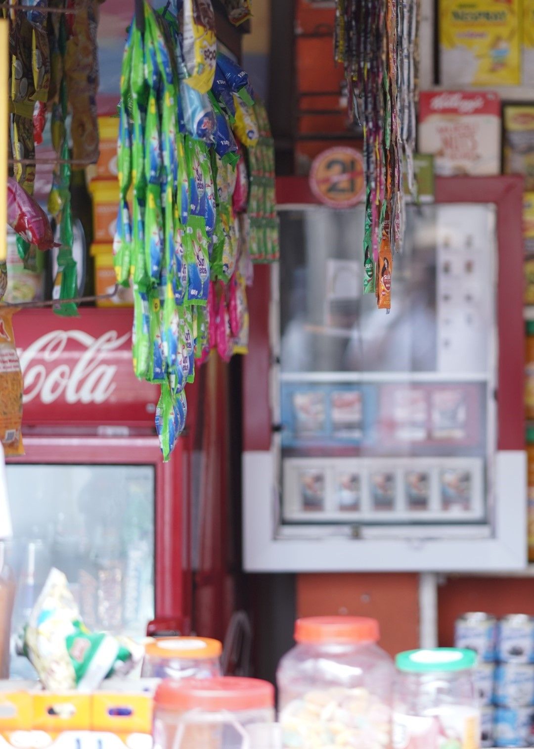 We are open from 6am-8.30pm 363 days of the year; we only close for the last day of Ramadan and Haj. Our day begins at 5am when we light incense to cleanse the shop. Soon after this fresh bread is delivered. In the morning our main trade is in newspapers and the sweet-smelling white loaves. These days we sell a lot of snacks and cool drinks to tourists including cashew nuts, chocolate and Coca Cola. Up until ten years ago we had supplies delivered by a lovely man called Vathiar who transported sacks of rice and lentils on his bullock cart.