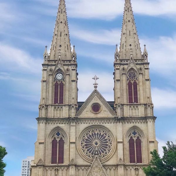 Next to the lively Shangxiajiu Pedestrian Street, there is an oriental “Notre Dame Cathedral”. It is a giant cross embedded in the center of the city from the aerial view. The towering twin spires, the granite carved beams of the Gothic buildings, and the beautiful stained glass in the church make it a religious shrine and a place to take wedding photos.