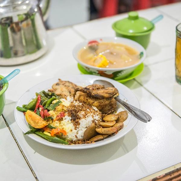 A warteg (Javanese self-service tavern) is where locals come to eat comfort food for breakfast, lunch and dinner at affordable prices. Pick your favourite dishes and calculate the price later. Expect to spend around Rp. 25,000 here.