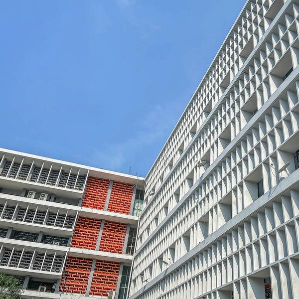 The interesting element of the building that it is enveloped with brise-soleil or sunscreen to filter the density of the sunlight. It is a great approach for buildings in tropical climate to reduce the heat inside the building while still benefitting parts of the sunlight.