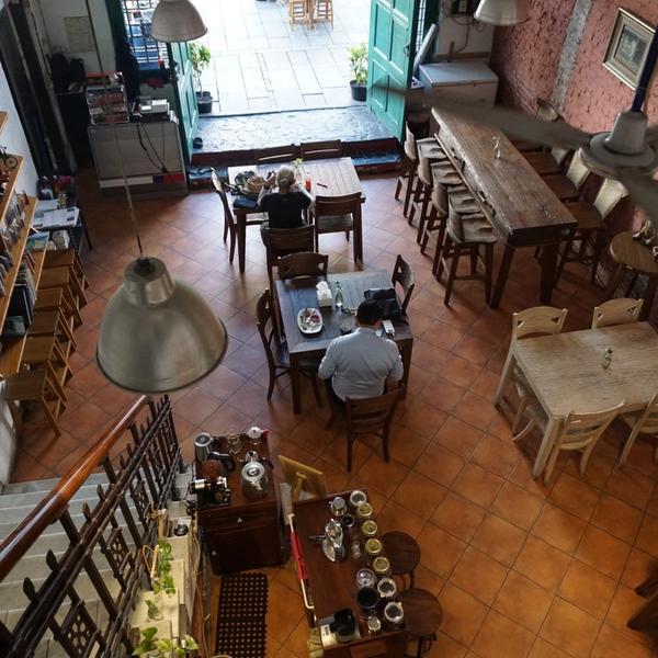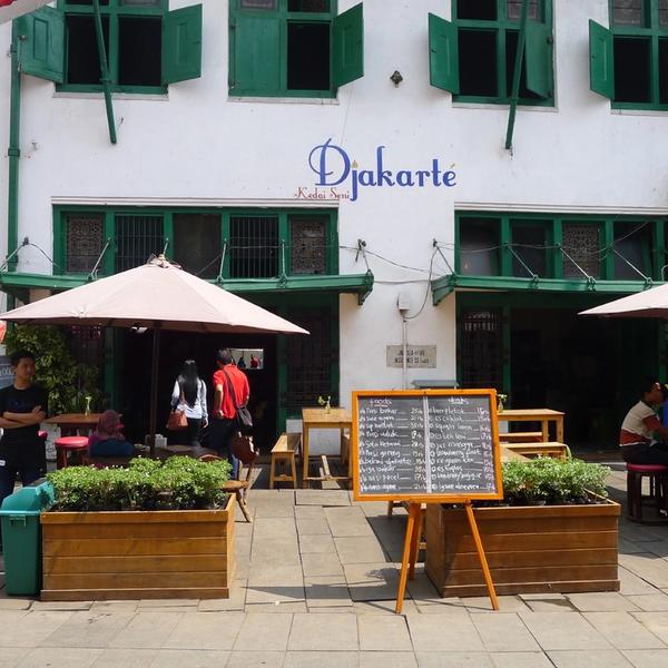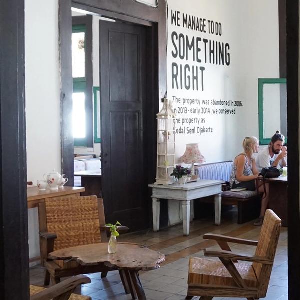 This traditional colonial building had been abaonded for over a decade. When the Djakarte team saw the original grand marble staircase, they were sold and embarked on a renovation. The shabby chic two-story interior is replete with crooked oil paintings and long wooden tables. Upstairs is more of a loungey atmosphere, decorated with vintage paintings and photographs. They even have a small collection of Indonesian cassette tapes available for sale!