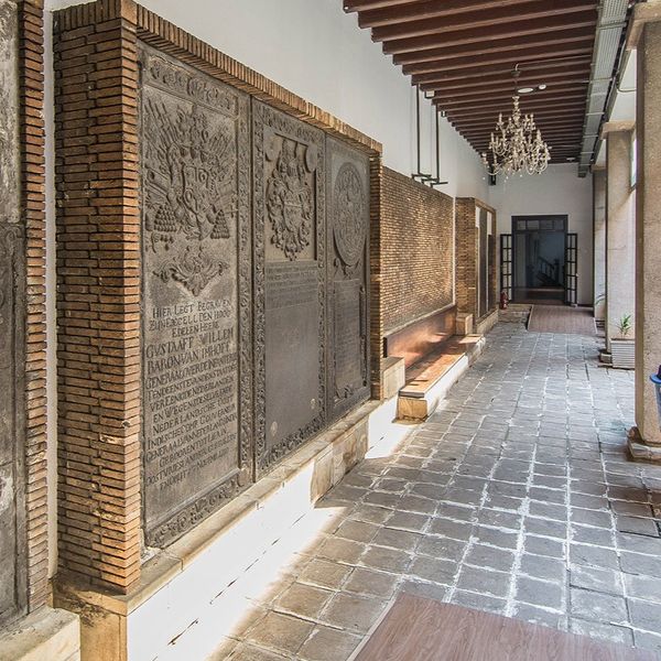 Buried in the backyard is the famous founder of Batavia J.P. Coen. The actual whereabouts of his remains are uncertain - some say that parts of his body were buried in different places - but this is his official tomb. In the museum he lives on as the fictional character Mur Jan Kung. It means ‘tall and thin’, just like Coen.