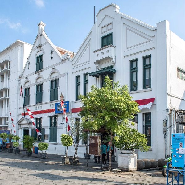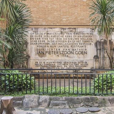 Originally this was the site of Batavia’s grand New Reformed Church, destroyed in 1808 by a big earthquake. It was a grandiose building with eight lofty domes. Few people know that the reason for the grand design was that the organ shipped from Holland to celebrate the church 100 year’s anniverdary was too large, so the congregation built a new one to accommodate the giant organ.