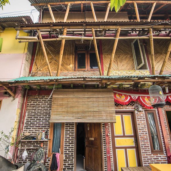 Rumah Kontoh is a model house for kampung upgrading: a three storey lightweight structure of stones, bamboo and recycled wood to house seven families, who share a common space and communal bathroom with clean water and sanitary facilities. Unique for Jakarta, the design was done hand in hand with the kampung residents and the wall frescoes are the work of the kampung kids.