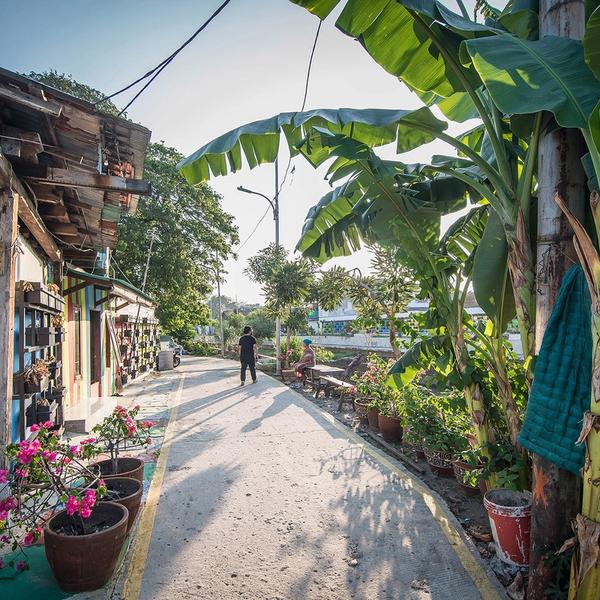 Destined to become a green area, but the people of the close-knit Kampung Tongkol successfully put a halt to the plans. They got help from University of Indonesia’s architecture students and Architecture Sans Fontières Indonesia (ASF ID) to improve the village: widen the river to reduce risk of flooding, restore and paint all facades and open an urban farm. The result: a self-reliant community and a cheerful stretch of urban artworks.