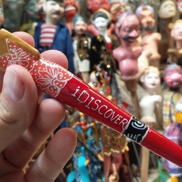 Pak Tatang’s puppets all have a unique story to tell! Impressed by the skill that goes into making a Wayang Golek, but don’t want to one? Support this small business and buy a custom engraved pen (IDR.20.000)!