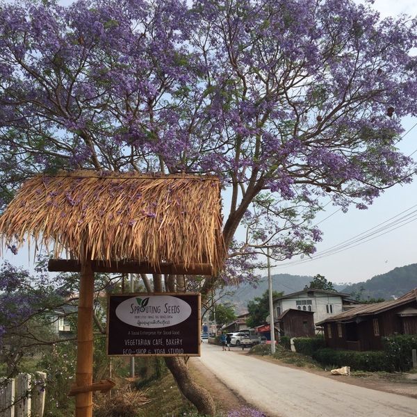 If Alice in Wonderland had a cafe, it might have looked a little something like Sprouting Seeds. The recycled U crate couch is the perfect spot to enjoy the sunshine, have a coffee or lay back with a book while you order a freshly baked spicy carrot cake from the lavender-painted counter. Filled with interestingly shaped pieces of furniture, this is not just another café, but a social enterprise that supports young people living in Shan State from impoverished backgrounds. They teach healthy and wholesome growing and food preparation but also the technique of using recycled materials. The counter for example is made from onion bags and glass, covered in clay and then lime wash to ensure natural waterproofing. This technique is what the staff teach to villages, schools and monastic schools under their training school branch Whispering Seeds.