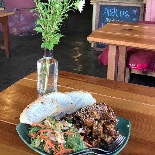 The menu is extensive with vegan and vegetarian goods aplenty. Customer’s favourites include tamarind-coated tofu, guacamole, homemade soup of the day, generously sized hearty sandwiches and the baked goods of muesli cookies, cinnamon scrolls and homemade ice-cream from salted caramel to coconut served with a peanut butter brownie.