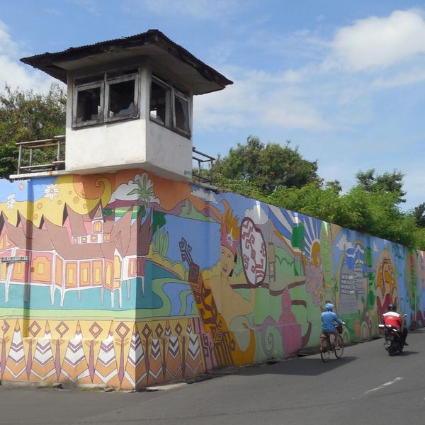 The major attraction of the abandoned compound is no longer the prison itself but the murals on the outer walls depicting the historic events of the Surabaya battle.