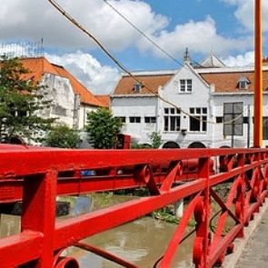 Originally this was a wooden drawbridge painted in a bright red colour, hence the name. The Red Bridge was one of Surabaya’s main landmarks as it connected the old European quarter on the west bank with Chinatown (pecinan) and the Arab Quarter (ampel), on the east bank of the Kali Mas canal.