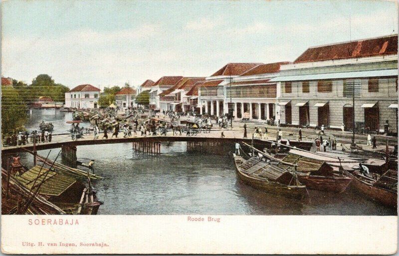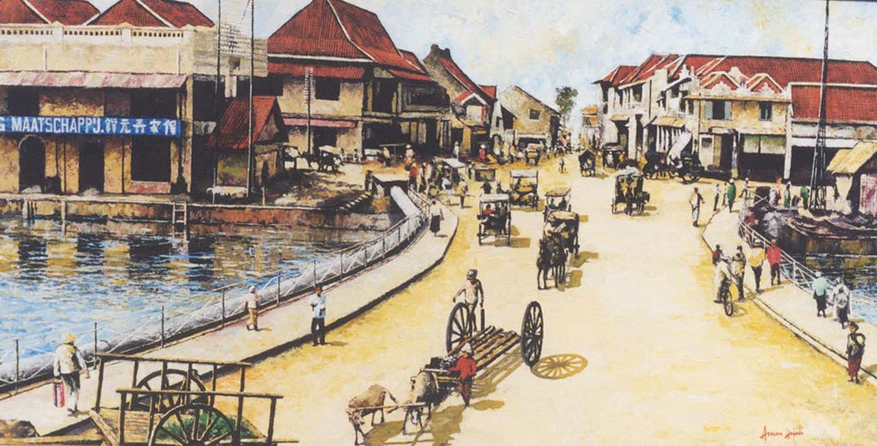 The canal was constructed by the Dutch in the 18th century and was a game changer in the local trade as it allowed for the transport of goods from the large vessels docked in Surabaya harbour into the warehouses in town. The red bridge and connecting streets were naturally at the heart of commercial activity in those days.