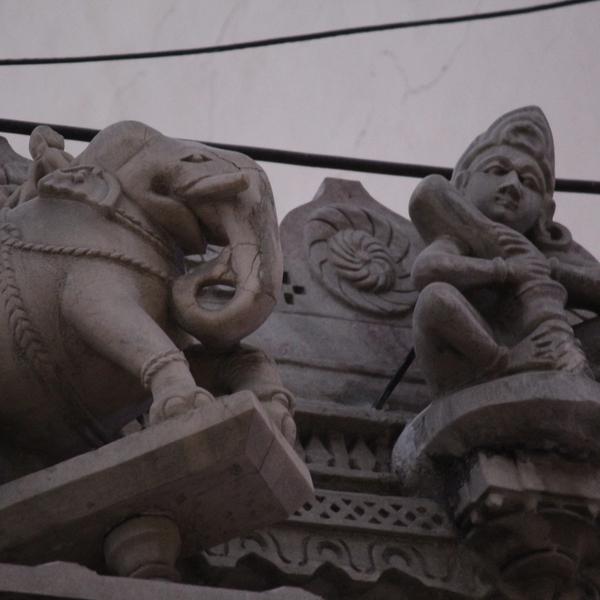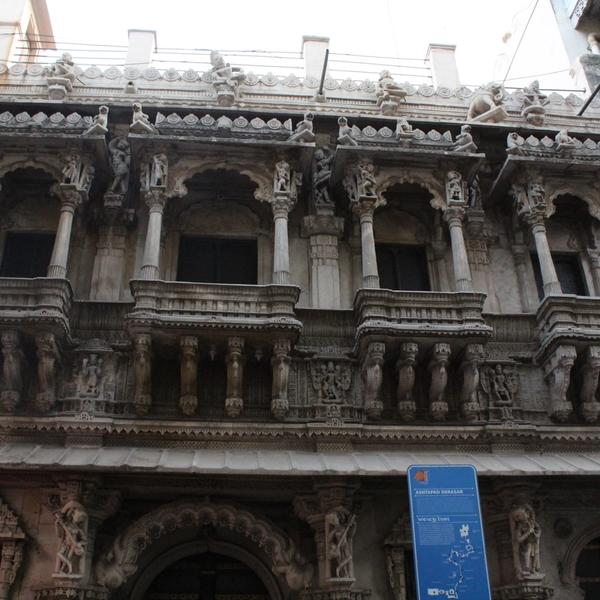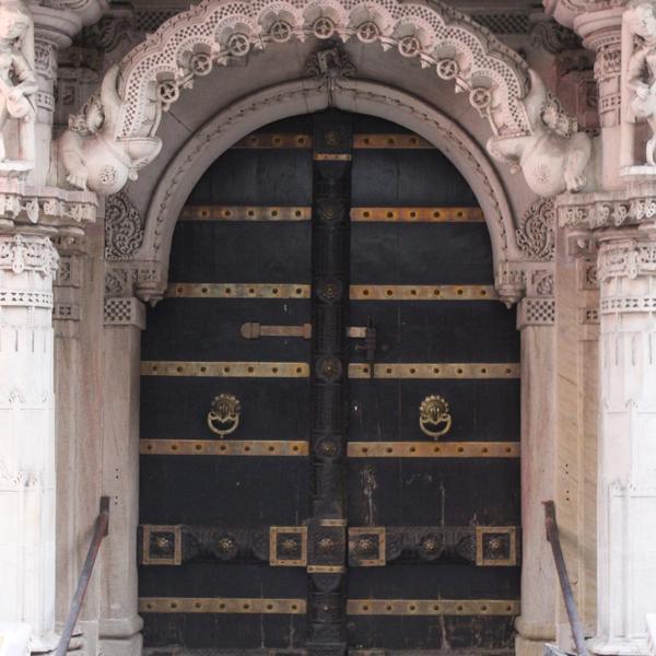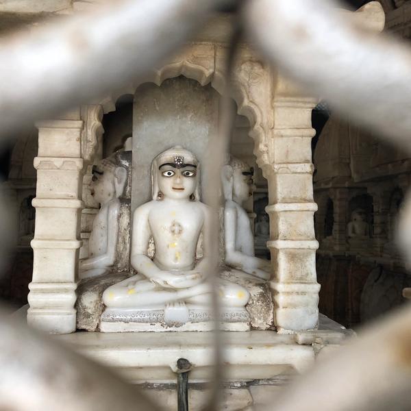 As you climb up the steps from the busy street, onto the portico of the temple, a sense of calm and serenity envelops the visitor. The shade of a sacred tree, known locally as the rayan, brings about absolute sense of peace, away from the hustle bustle of the city outside. Built in the Hindi-Jain style with elaborate decorations, dancing figures, animals and floral patterns surround the holy footprints of the Lord Adishvar, kept in a small shrine under the rayan tree.