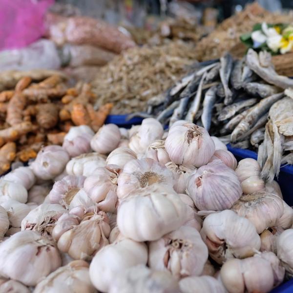 The outside area of the market is reserved for fruit and vegetables. The first floor is a serious seafood destination, 2nd floor is for aromatic spices. But our favourite floors are the 3rd and 4th where you can find what is probably Denpasar’s largest and cheapest collection of fabrics, Bali Batik (made in Java!), and clothes for Hindu/Balinese ceremony. All of this complemented with sellers of offering equipment on every corner. A unique shopping experience!