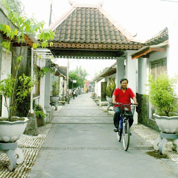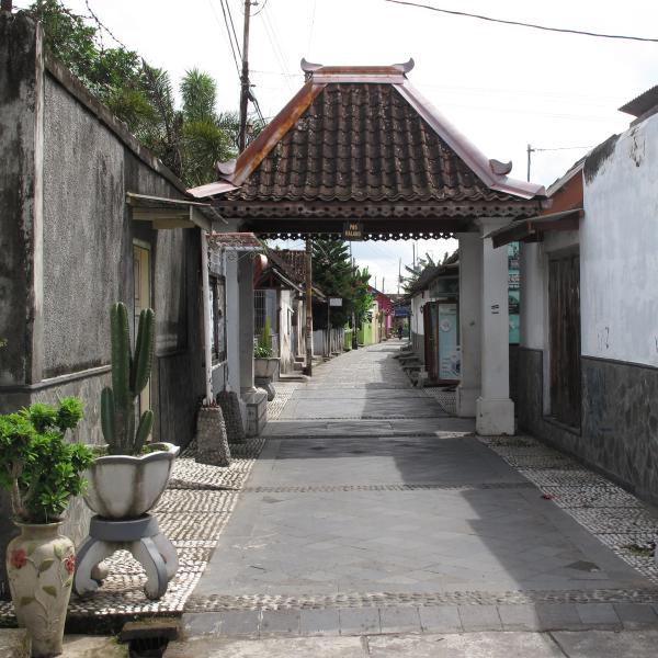 Gang Soka is perhaps the most splendid alley of Kotagede. Sill many European influences can be found in the colourful architecture. In the 1900’s this little tiled roof canopy was the guard post of a major trading hub between two kingdoms: the Kotagede royals and the Solo Sultanate.