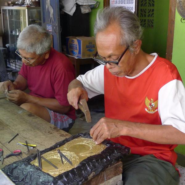 Pak Sumedi’s workshop is where you find local craftsman transforming silver, bronze, leather and copper into delicate jewellery. This is a typical local workshop, known for its longstanding tradition of metal engraving. Customers flock here from all over Java to get pieces custom-made or have silver objectsengraved.
