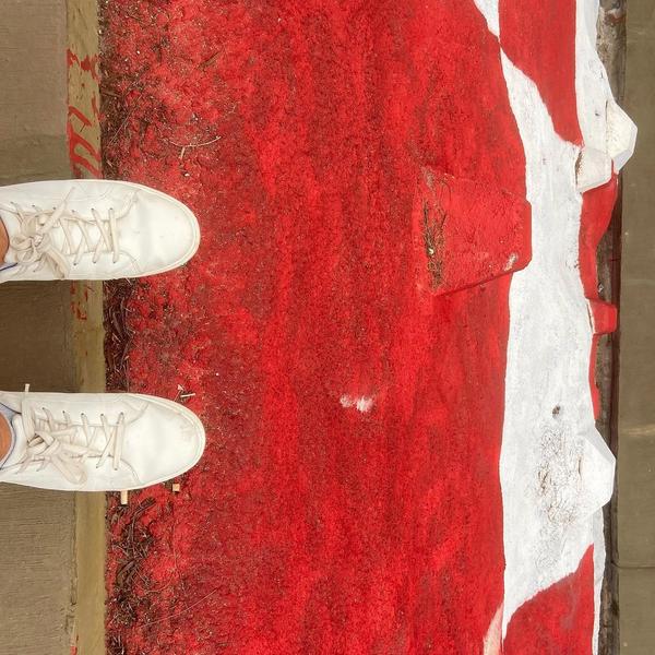 Facing the zebra crossing to the northwest, you can see a white-and-red checkerboard perched on top of the hill. This was the prime navigational beacon for pilots to prepare for landing at the now-closed Kai Tak airport.