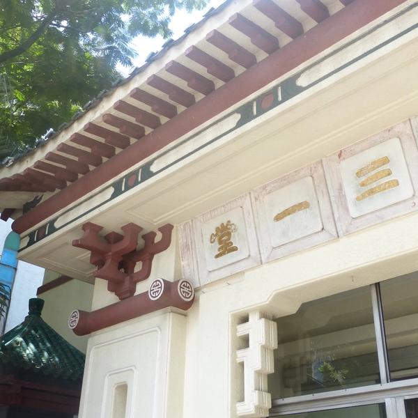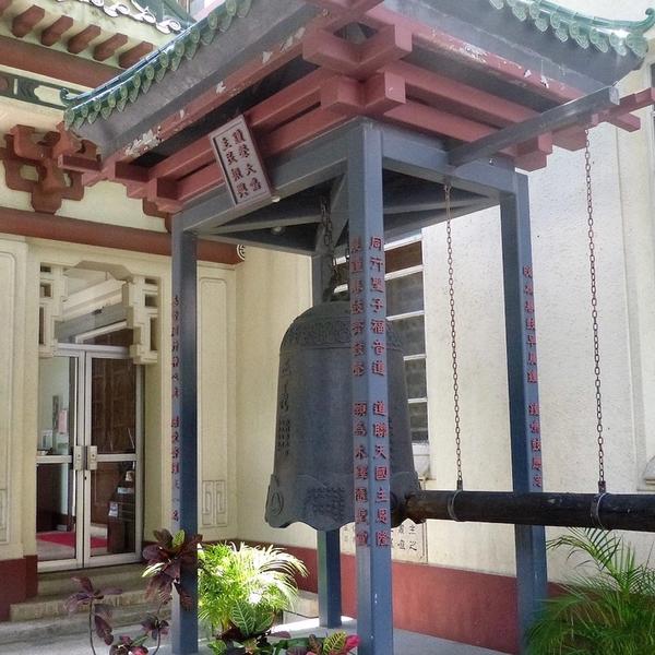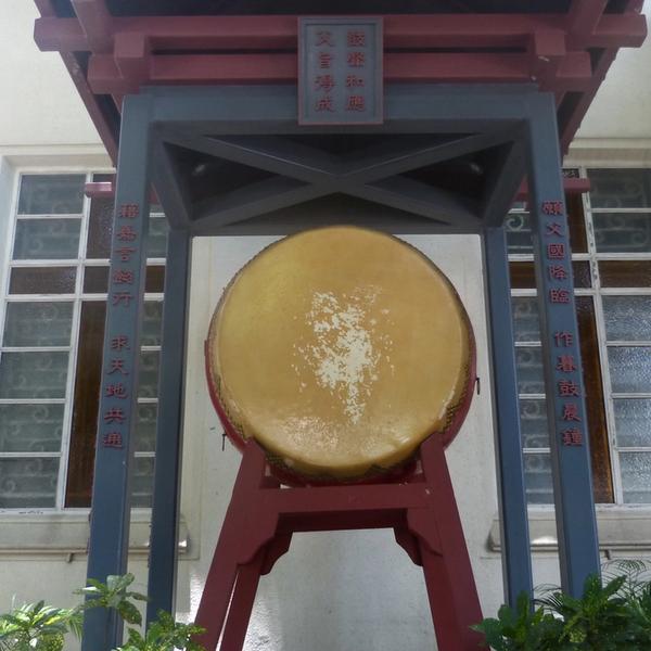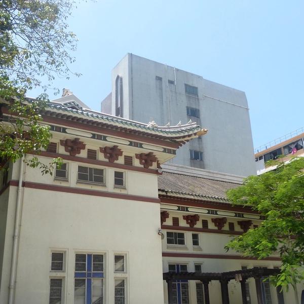 Holy Trinity Church was the first Christian church on the Kowloon side. It was built in 1891, almost half a century after St. John's cathedral on the island. It's a unique church, built in an artistic blend of East and West. Look up to the sculpted eaves of the roof; you'll see a dragon head next to some peaceful doves. Next to the entrance are a large drum and a gong; Buddhist temple elements merged into a Christian church.