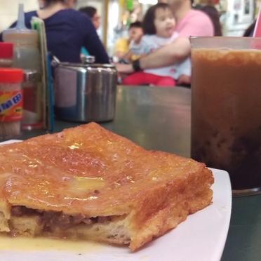 Try the signature red bean milk tea (紅豆奶茶) for HK$21 and pair it with their unique French toast (沙嗲牛肉西多士) topped with beef satay! (HK$28).