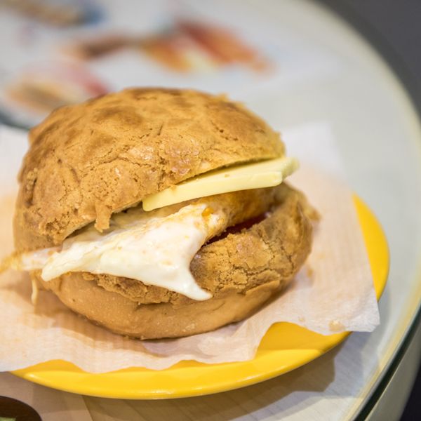 The Sunny Side Up Pineapple Bun (HK$20) is the café’s must-have. A pineapple bun filled with a thick-sliced butter and tomatoes, giving it extra texture. Other favourites include signature egg & cheese corned beef bun and frozen milk tea.