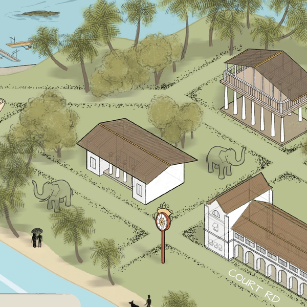 From old maps, we suspect that this was the house of the elephant tax collector, located near the stables. The house's traditional name is Gajapathigewatta, it means elephant keeper's house, so it could also have been the Gajanayaka Mudaliar, the person in charge of the elephant trade.