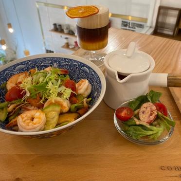 Besides coffee, they also serve tea and food, including a good value lunch with chicken breast, shrimp, salad and fruit combinations.