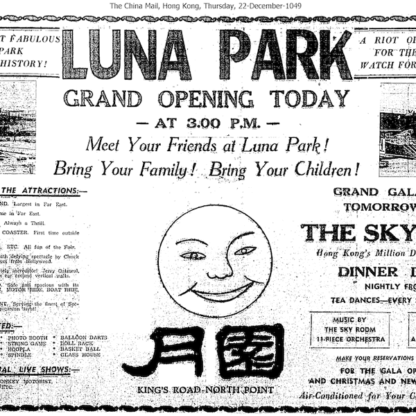 When the Lee Gardens opened in Causeway Bay in 1929, Luna Park got out of fashion and the park was rented to a film company as a movie set. After the war, the whole site was turned into a residential estate. The only thing that remains now are the names: Ming Yuen West Street and Ming Yuen Mansion.