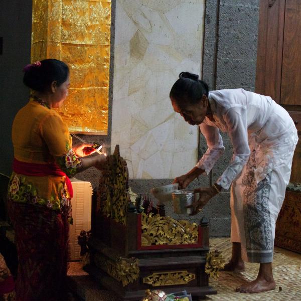 About a year ago, suddenly a thin layer of oil appeared on the statue of the god Dewi in the Beji Temple. This was something the village had never seen before. Taking this as a spiritual gesture to protect the village, today, the temple priest carefully removes the oil off of Dewi’s face, and mixes it with coconut oil to use for healing ailing villagers.