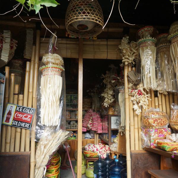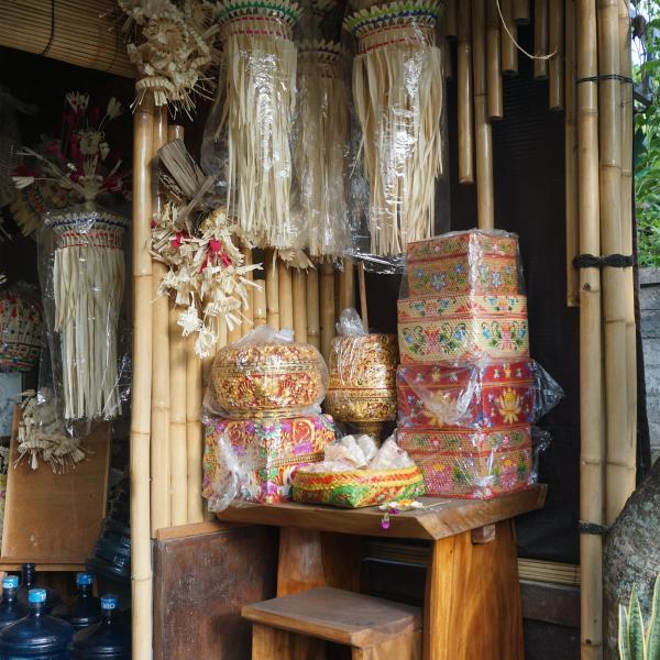 Across from Barong Cookies on Jl. Raya Nyuh Kuning is Warung Nati, a handcrafted offering shop. Your chance to buy one of those beautiful Balinese flower baskets.