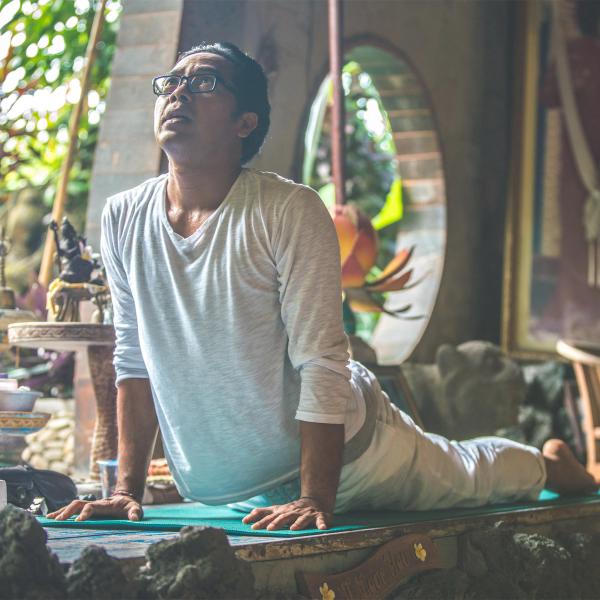Taman Hati is translated as ‘Garden of the Heart’ and the beautiful open-air ashram in an exotic garden setting provides for a rejuvenating yoga experience: sharing spiritual moments, dynamic body strengthening, but also plenty of laughter, light, and guidance. His repeated mantra of happiness ‘happy belly, happy mind, happy body’ throughout the class, certainly leaves you smiling and well, happy.