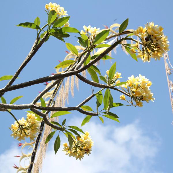 As part of the village’s greening initiative, the town has planted nearly 5,000 frangipani tree’s lining the beautiful streets in all of their splendour. The village women collect the fallen flowers to make essential oils.