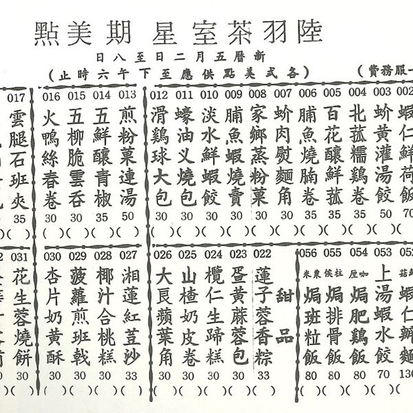 From day one, Luk Yu has been a high-class restaurant. When other places priced dimsum (點心) at 20 cents, Luk Yu was selling at 60 cents. The Art Deco interior - wooden screens, ceiling fans and rosewood furniture - has kept the grandeur of old Hong Kong. Luk Yu was probably the first restaurant to employ Indian guards, to avoid non-regulars or casually dressed customers taking up the precious first floor seats.