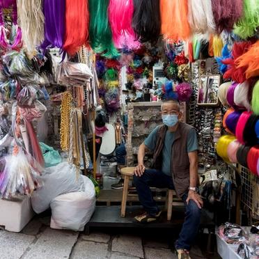 The market stalls have been there since the 1950s, selling all kinds of bits and pieces. Auntie Chung came often: “You can find a good selection here, buttons, needles, embroidery threads, chalks, ribbons, basically everything you need for sewing.” Pottinger is still the place to go for costumes and decorations for Chinese New Year and Halloween.
