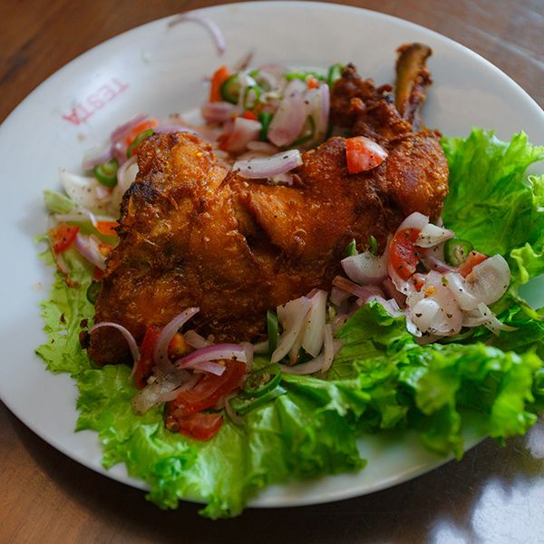 Try the nice sweet raisin buns, mallu pan (fish buns) pol rottis and fried chicken. They ‘re great with some spicy sambal dip.