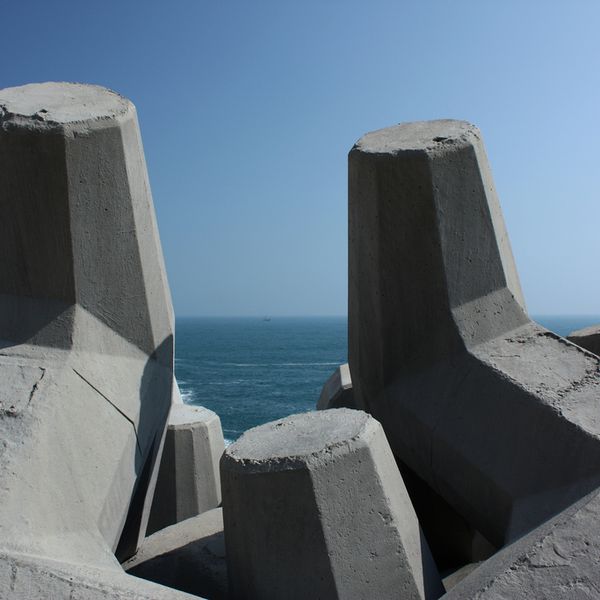 The dolosse not only break the waves, they also provide excellent shelter for little fish. There are thousands of young yellowtail barracuda happily hiding between the concrete anchor blocks.