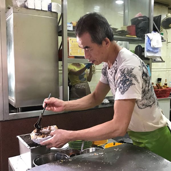 In an alleyway of old Sai Kung, a man can be found cooking steamed rice rolls on a hot metal sheet, under the large golden characters 'Golden Mountain Congee', where he’s been working for decades. Wafts of steam enter the air, as spatulas and blades clang against the metal sheet.
