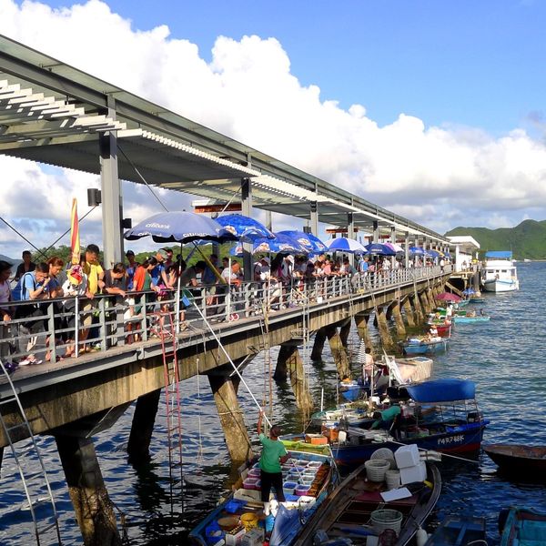 Much like Hong Kong's iconic skyline and neon-lit streets, the red-sail Chinese junk boats have become recognizable symbols of the city. These boats you can see at the Sai Kung pier. Normally quiet on weekdays, but when the weekend hits it gets crowded like crazy.