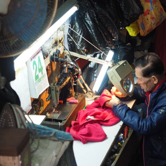 Mr Lee runs your typical Hong Kong neighbourhood tailor shop. Whether it's mending a hole, repairing a zipper, or sewing on a button, Mr Lee can do it for you. No job is too big or too small for him. Mr Lee's father opened the shop in 1940 on Eastern Street. "The busiest times were the 1950s & 60s; stockings were the most popular item to get repaired! They were super expensive back then, so people couldn't afford to buy brand new ones," Mr Lee explains. "Sometimes pawn shops would bring clothes that no one claimed, so I could repair and sell them".