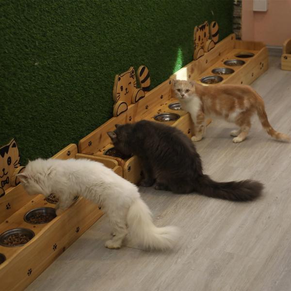Freedom Cafe is home to some famous furry friends; meet Monster and Cleo rare Sphynx breeds, and the odd-eye Kho Manee cats Tom and Jerry.