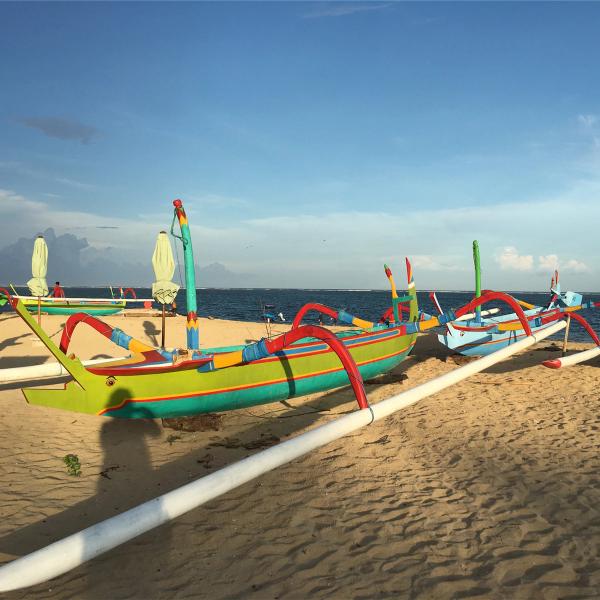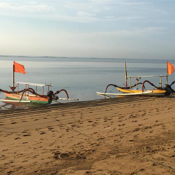 Get up early in the morning when the Sanur fisherman return with their catch. The eye-catching wooden fishing boats are called jukung. With its big bamboo outriggers and a simple ‘lateen’ - a triangle-shaped sail – they are built to navigate shallow waters, the elegant boats only skimming the ocean’s surface.