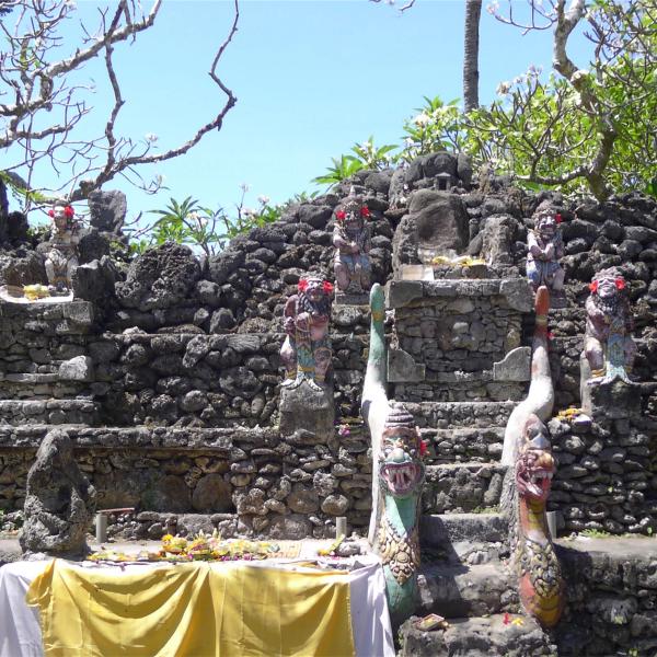 This temple is unlike any other one on Bali! Built pre-hindu times by indigenous villagers and still in its original shape. Built to protect the village from the sea, the shrines are not from stone or brick but made out of coral from the Sanur Reef.