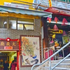 Fishermen came in droves to worship and eventually in 1840 the piece of wood was replaced by a proper temple: the first Kwan Yam temple 觀音廟 on Pound Lane. In later years the temple had to be relocated for housing development and it was rebuilt on Tai Ping Shan Street. However because the site was much smaller than the original one, the temple was split into three smaller ones: Kwan Yam 觀音廟, Water and Moon Kwan Yam 水月觀音廟 and Tai Sui 太歲廟. All three temples are still there today.
